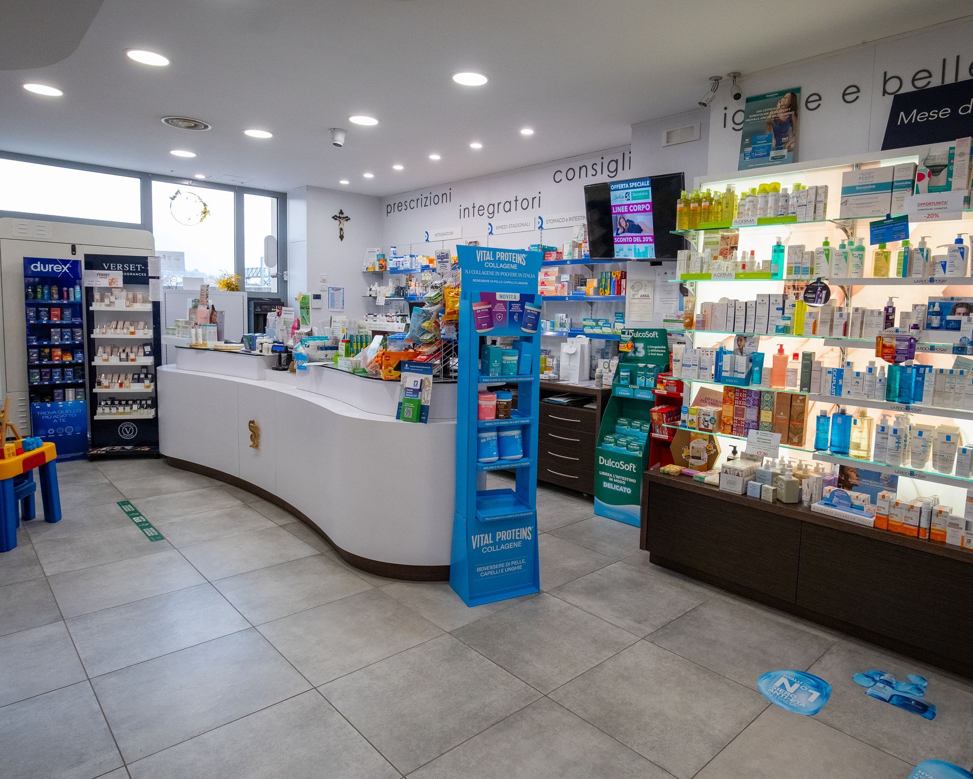 La struttura, organizzata in molteplici reparti, è pensata per garantire un ambiente ordinato, accogliente e facilmente accessibile, dove ogni persona può ricevere indicazioni chiare e consulenze personalizzate. Grazie a un team qualificato e a un’organizzazione supportata da sistemi automatizzati, la farmacia assicura un servizio efficiente, accurato e sempre orientato all’ascolto delle esigenze individuali.